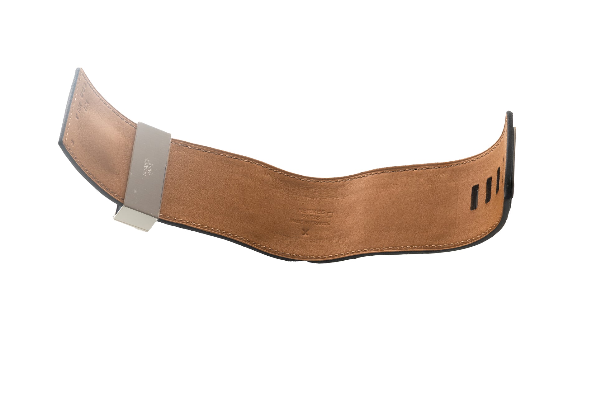 Made from premium exotic leather and masterfully assembled in France, this bracelet exemplifies Hermès’ heritage of fine craftsmanship. The contrast between rich, textured crocodile and gleaming silver-plated accents creates a powerful statement piece. The 4 cm width gives it presence, while the interior diameter ensures a comfortable and balanced fit.