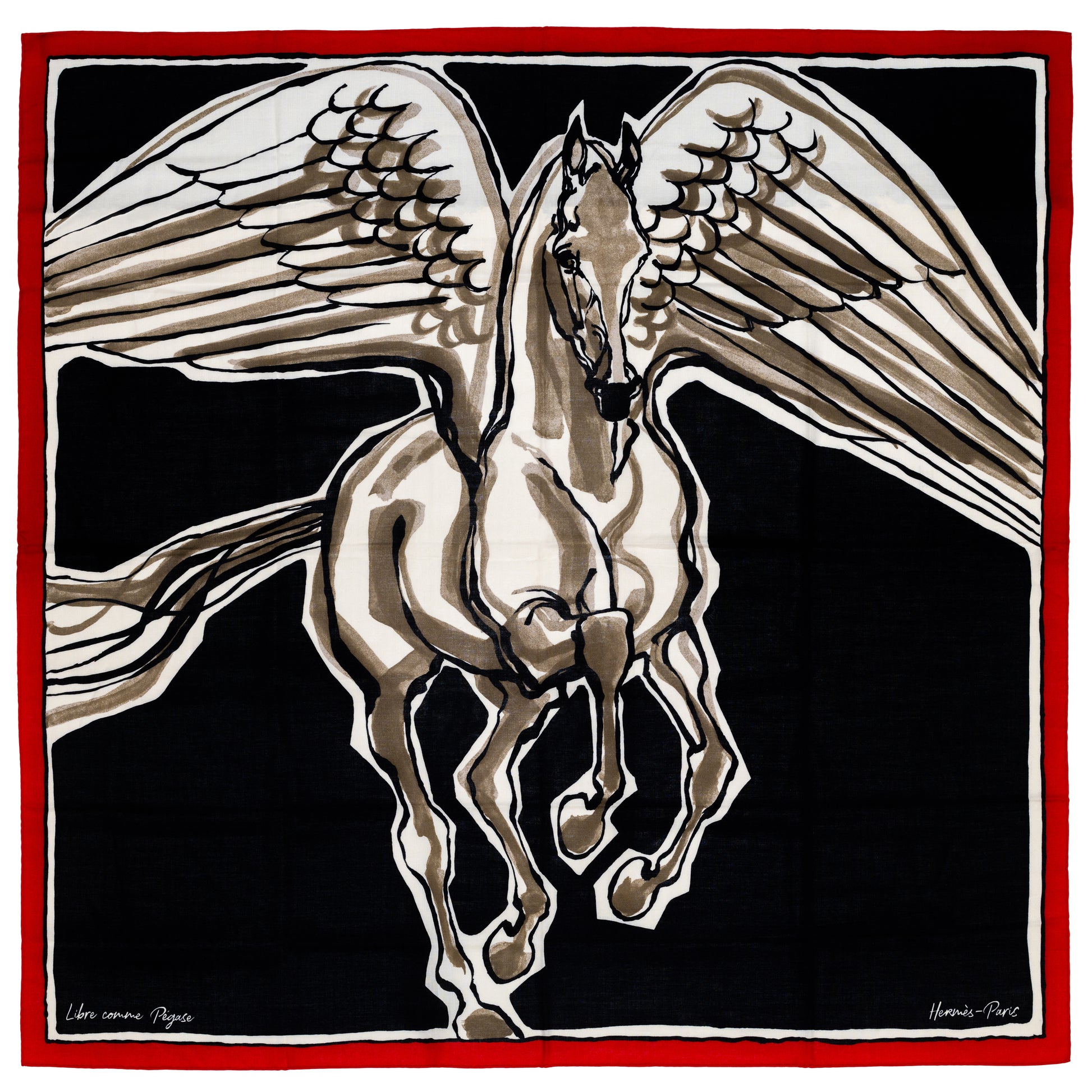 Story : Jean-Louis Sauvat, a French sculptor, draftsman, and passionate horseman, masterfully captures the elegance of horses—his lifelong inspiration. With swift, expressive strokes, he brings to life the majestic Pegasus, embodying strength and grace as it takes flight. Symbolizing Hermès, this winged horse carries us aloft, galloping through silky folds toward Olympus and boundless freedom.
