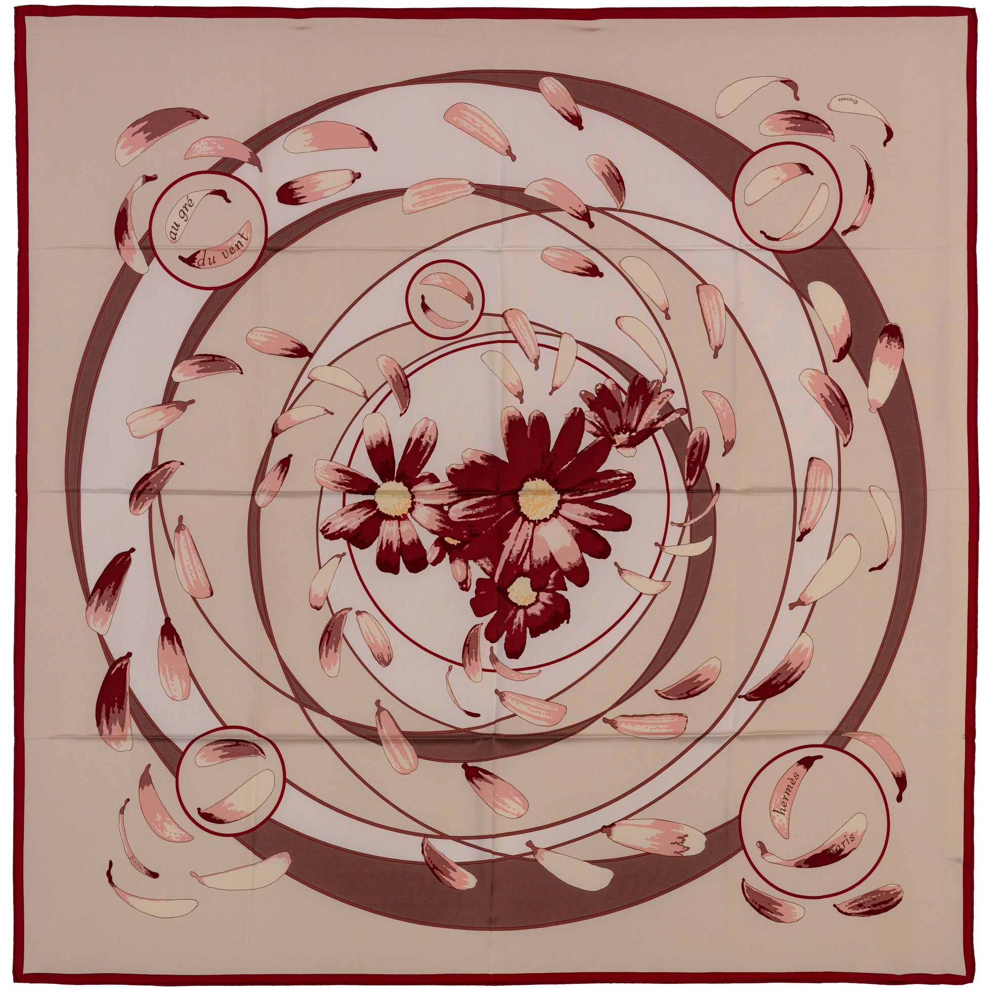Hermes Silk Scarf Au Gré du Vent – Bordeaux Beige - Mint - Collector